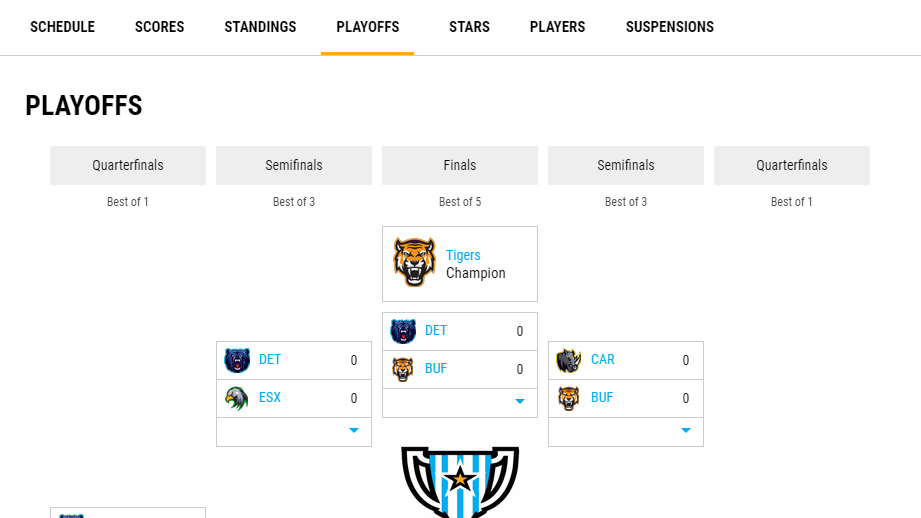 Easily track progession of teams through each round of your playoffs. Crown the champions to go down in history.