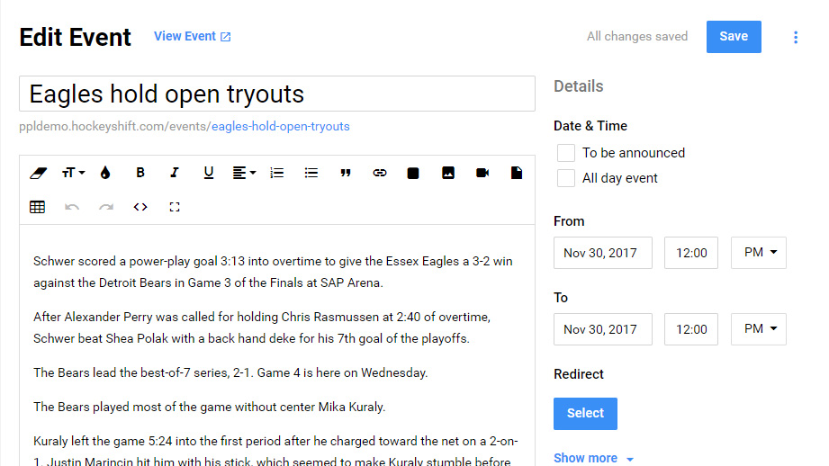 Post news articles with ease. Enhance your article with a featured photo or video.